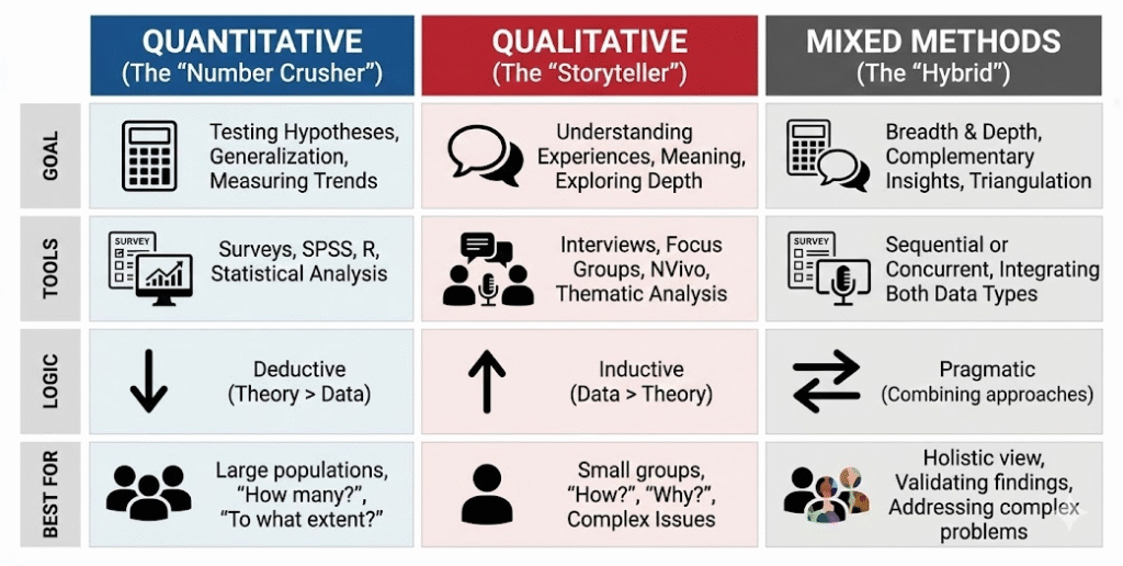If you are a first-year researcher, these terms can feel like “Academic Noise.” But we have sorted it for you with an easy explanation of each methodology:
